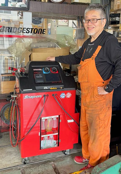今、主流になりつつある新型ガス「HFO-1234yf」はもちろん、従来の「HFC-134a」にも対応しているので、ほとんどの国産車に使用OK! さらに、PAGオイルのガソリン車も、POEオイルのハイブリッド車も対応可能な優れモノです。 エアコンガスを規定量しっかり充填してあげることで、冷え具合がグッと良くなり、燃費の改善にもつながります。 「なんだか最近エアコンの効きが悪い…」という方は、ぜひ一度ご相談ください。